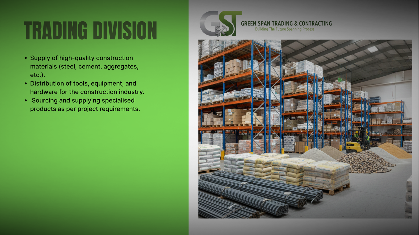 At Green Span Trading & Contracting, “Making the Complex Simple” is more than a slogan; it is our operational philosophy. We understand that infrastructure development involves a web of logistical, technical, and environmental challenges. Our role is to provide a streamlined, “one-stop” solution that gives our clients peace of mind.